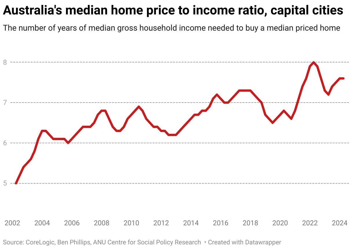 The number of years of median gross household income needed to buy a median priced home