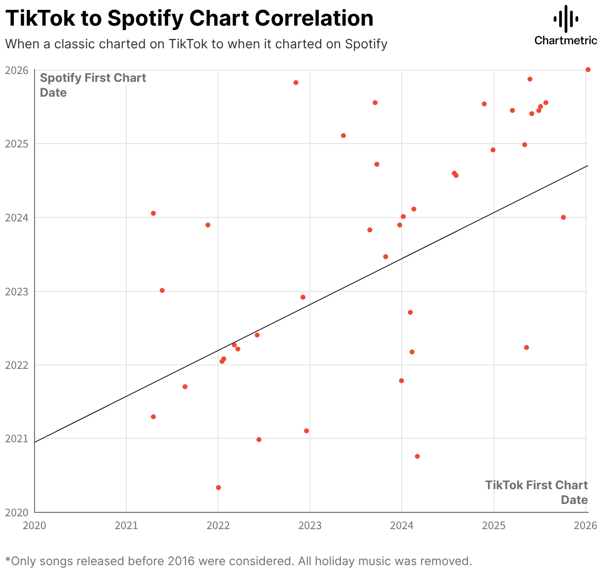 When a classic charted on TikTok to when it charted on Spotify