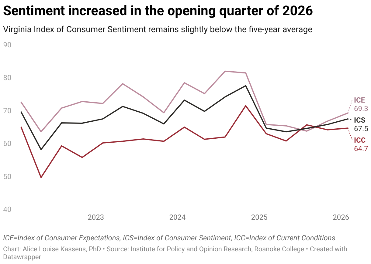 Virginia Index of Consumer Sentiment remains slightly below the five-year average