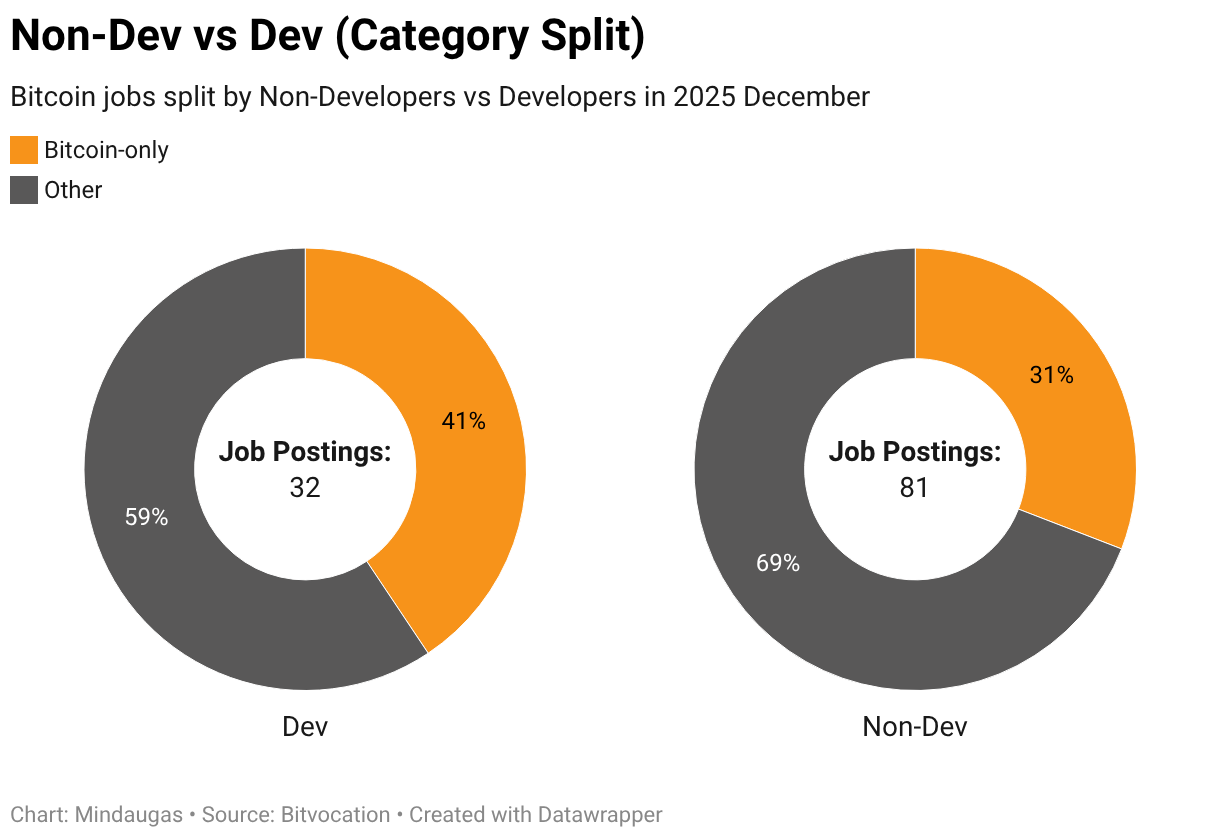 Bitcoin jobs split by Non-Developers vs Developers in 2025 December