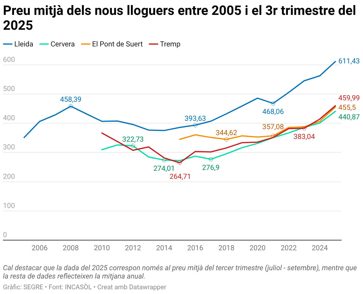 Preu mitjà dels nous lloguers entre 2005 i el 3r trimestre del 2025