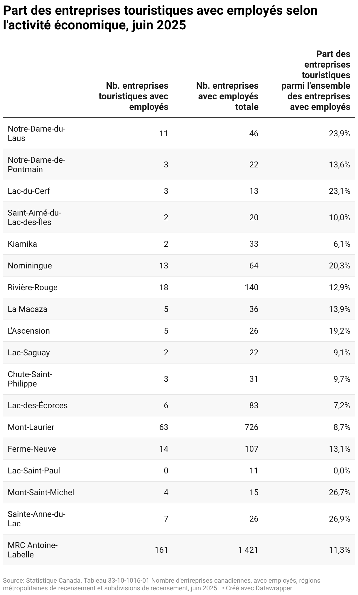 Part des entreprises touristiques avec employés selon l'activité économique, juin 2025