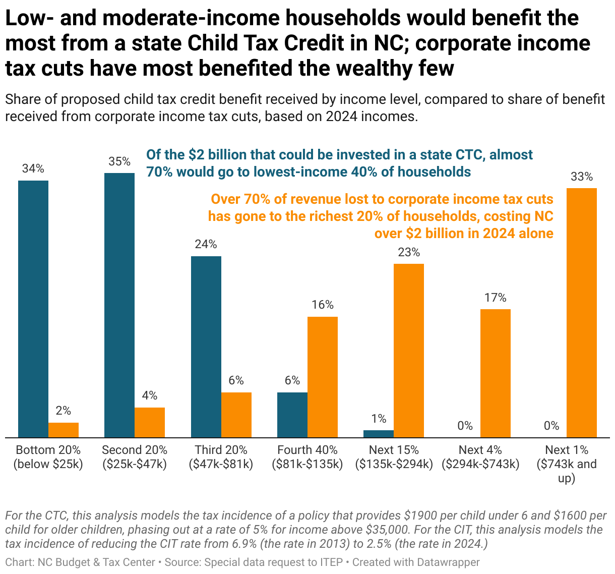 Low- and moderate-income households would benefit the most from a state Child Tax Credit in NC; corporate income tax cuts have most benefited the wealthy few
