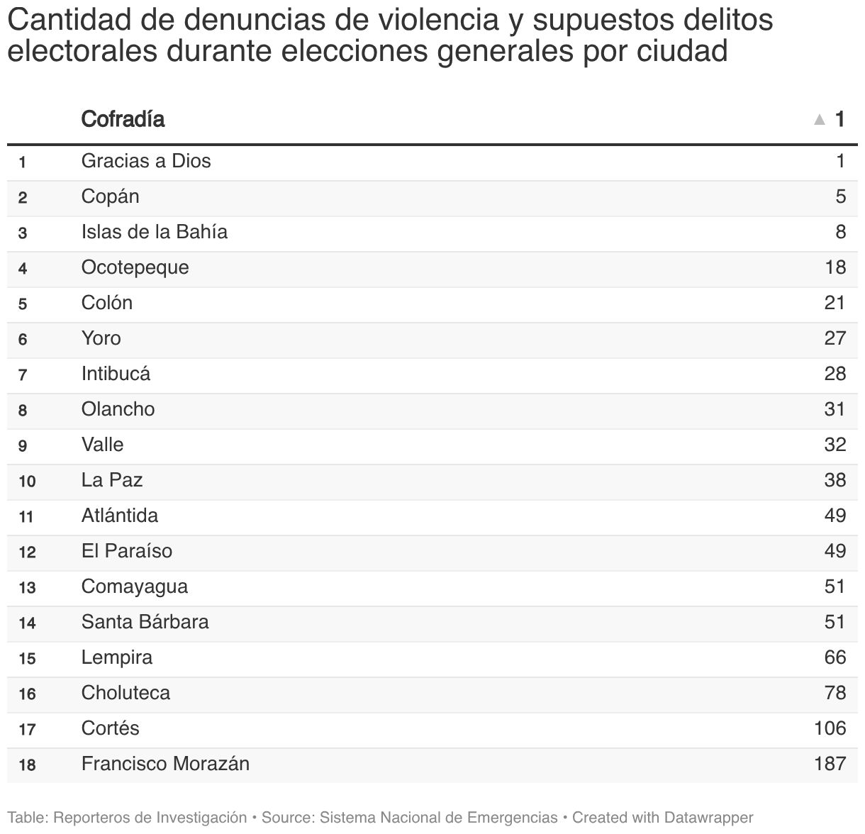 Cantidad de denuncias de violencia y supuestos delitos electorales durante elecciones generales por ciudad