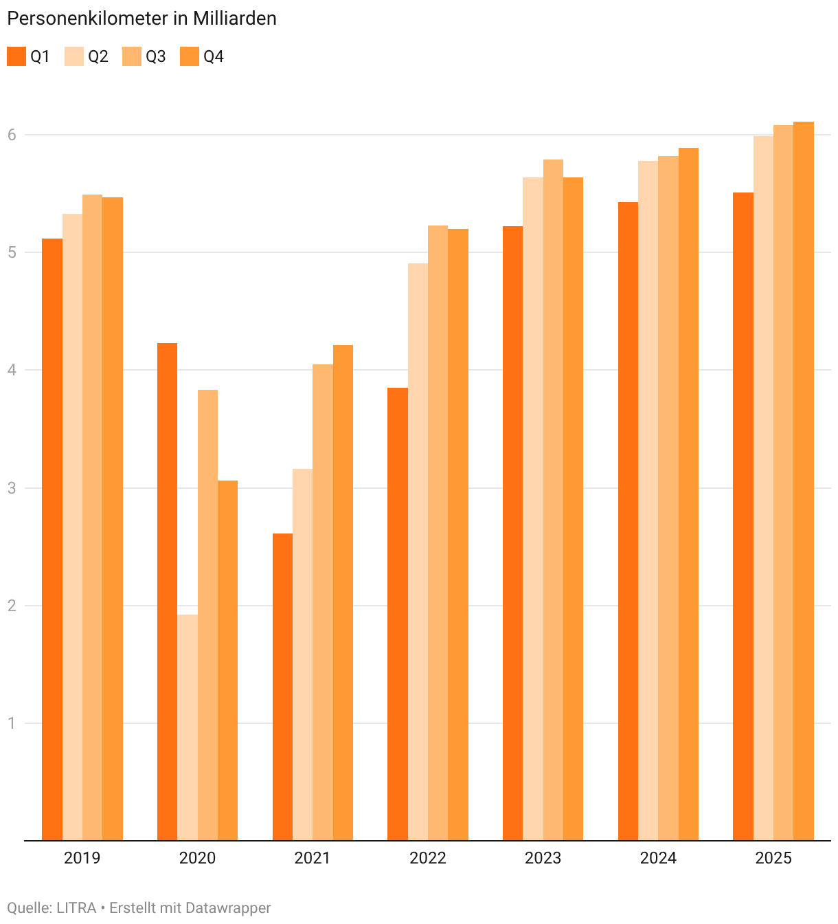 Personenkilometer in Milliarden