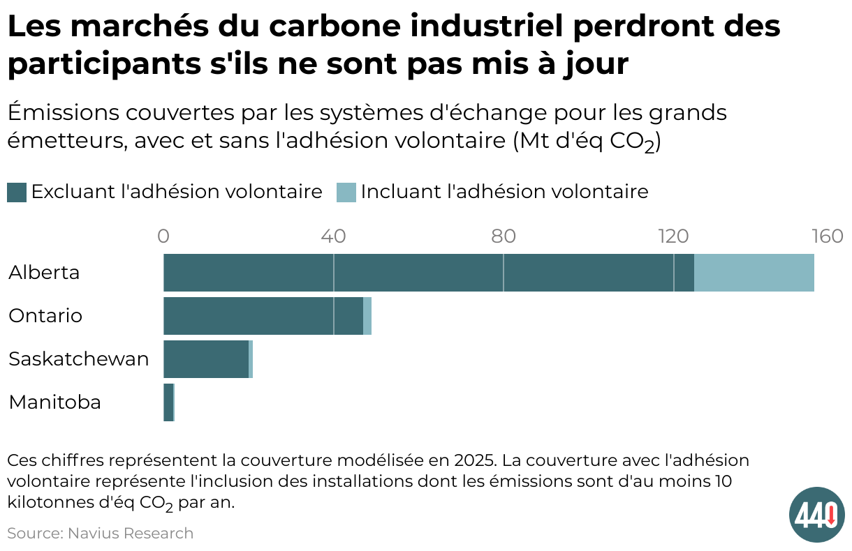 Émissions couvertes par les systèmes d'échange pour les grands émetteurs, avec et sans l'adhésion volontaire (Mt d'éq CO2)