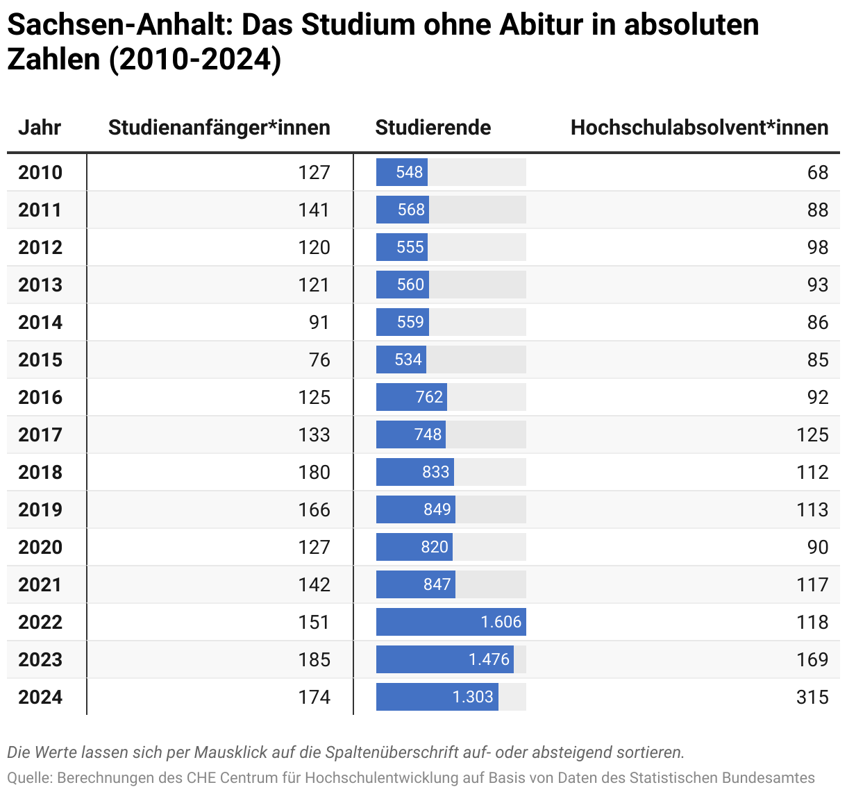 Sachsen-Anhalt: Das Studium ohne Abitur in absoluten Zahlen (2010-2024)