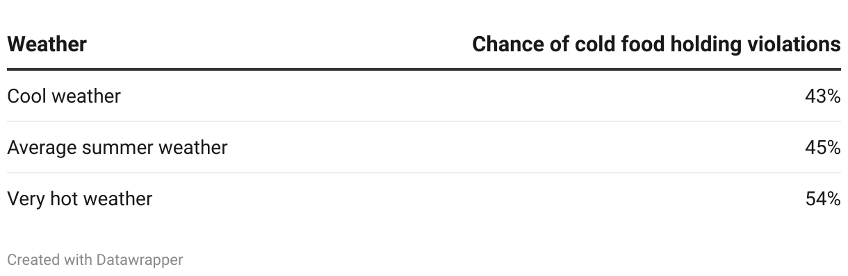 Percent of inspections with cold food holding violations