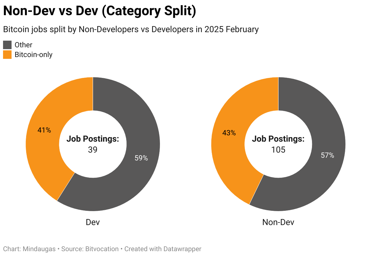 Bitcoin jobs split by Non-Developers vs Developers in 2025 February