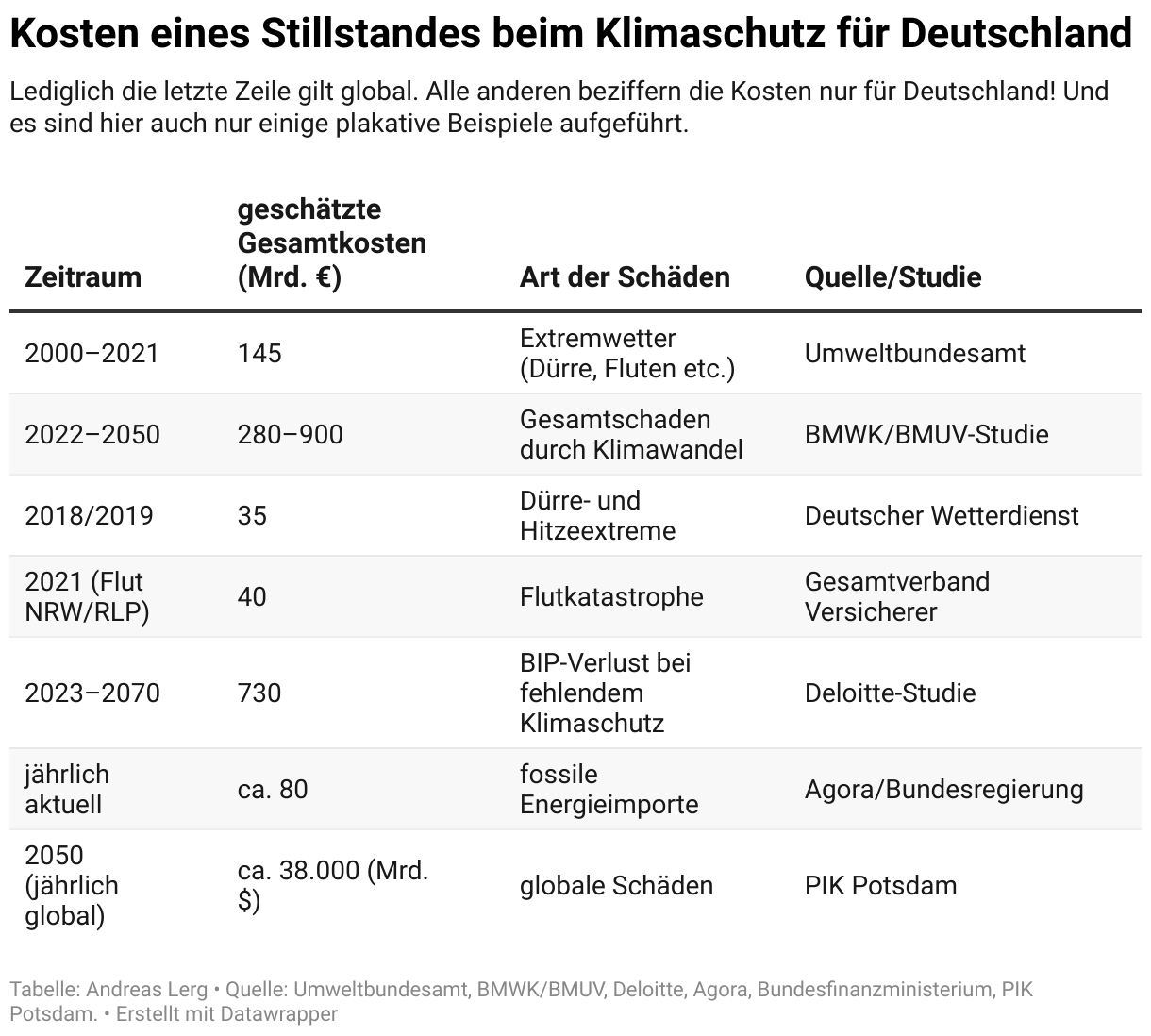 Lediglich die letzte Zeile gilt global. Alle anderen beziffern die Kosten nur für Deutschland! Und es sind hier auch nur einige plakative Beispiele aufgeführt.