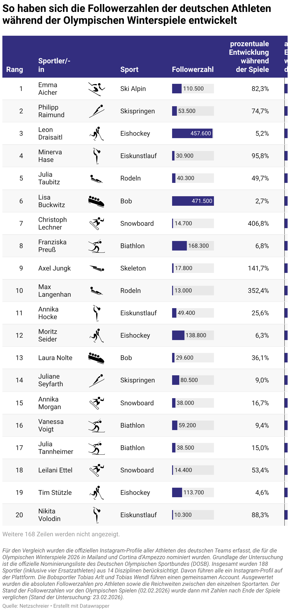 So haben sich die Followerzahlen der deutschen Athleten während der Olympischen Winterspiele entwickelt
