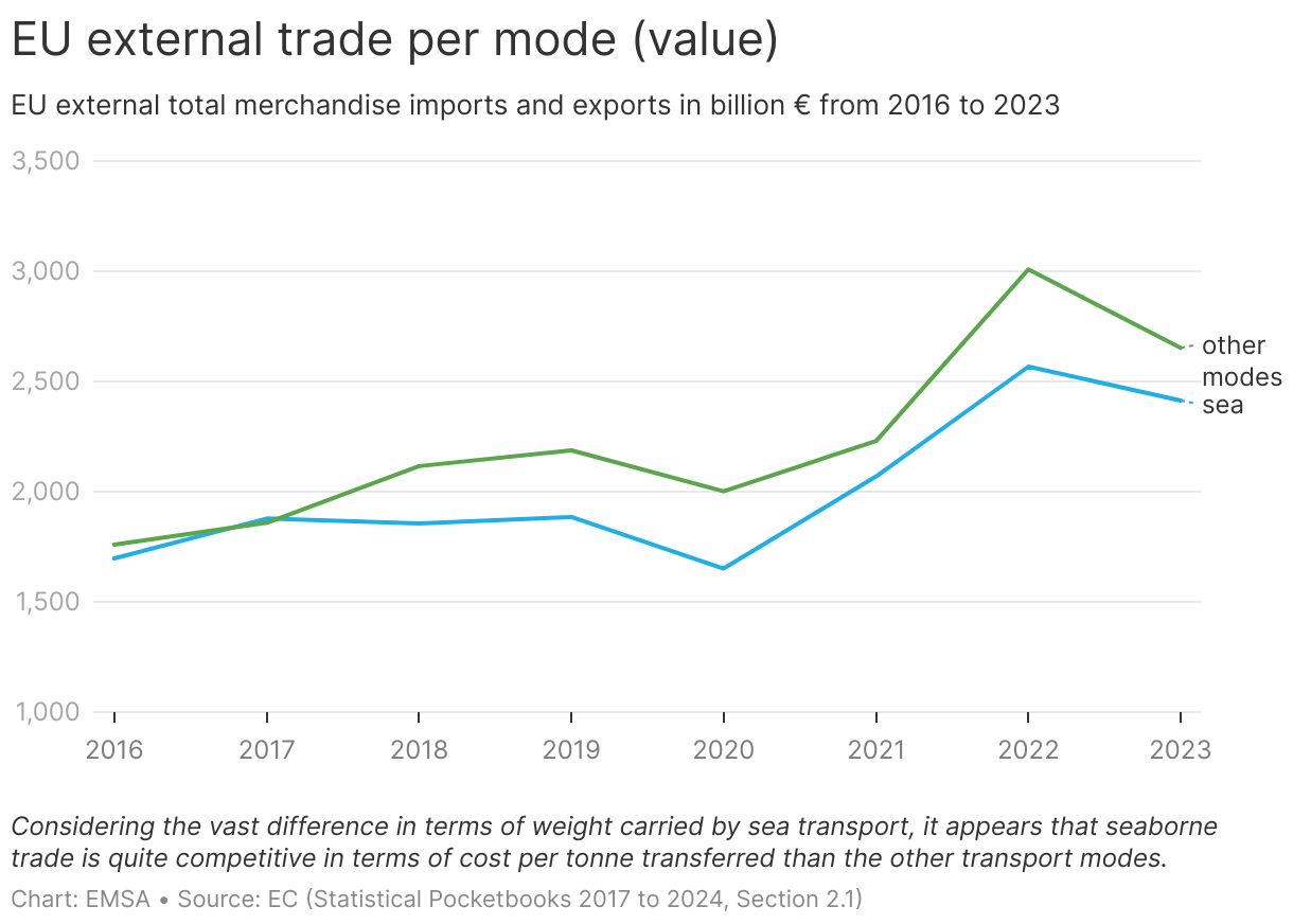 EU external total merchandise imports and exports in billion € from 2016 to 2023
