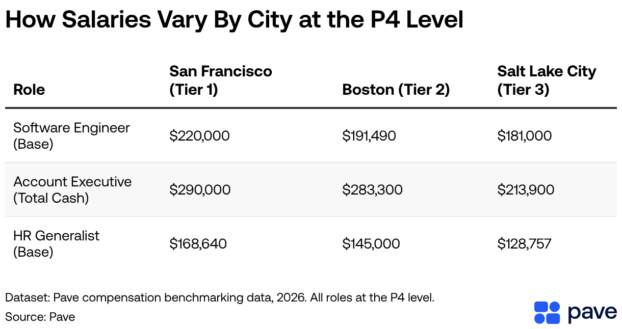 How Salaries Vary By City at the P4 Level