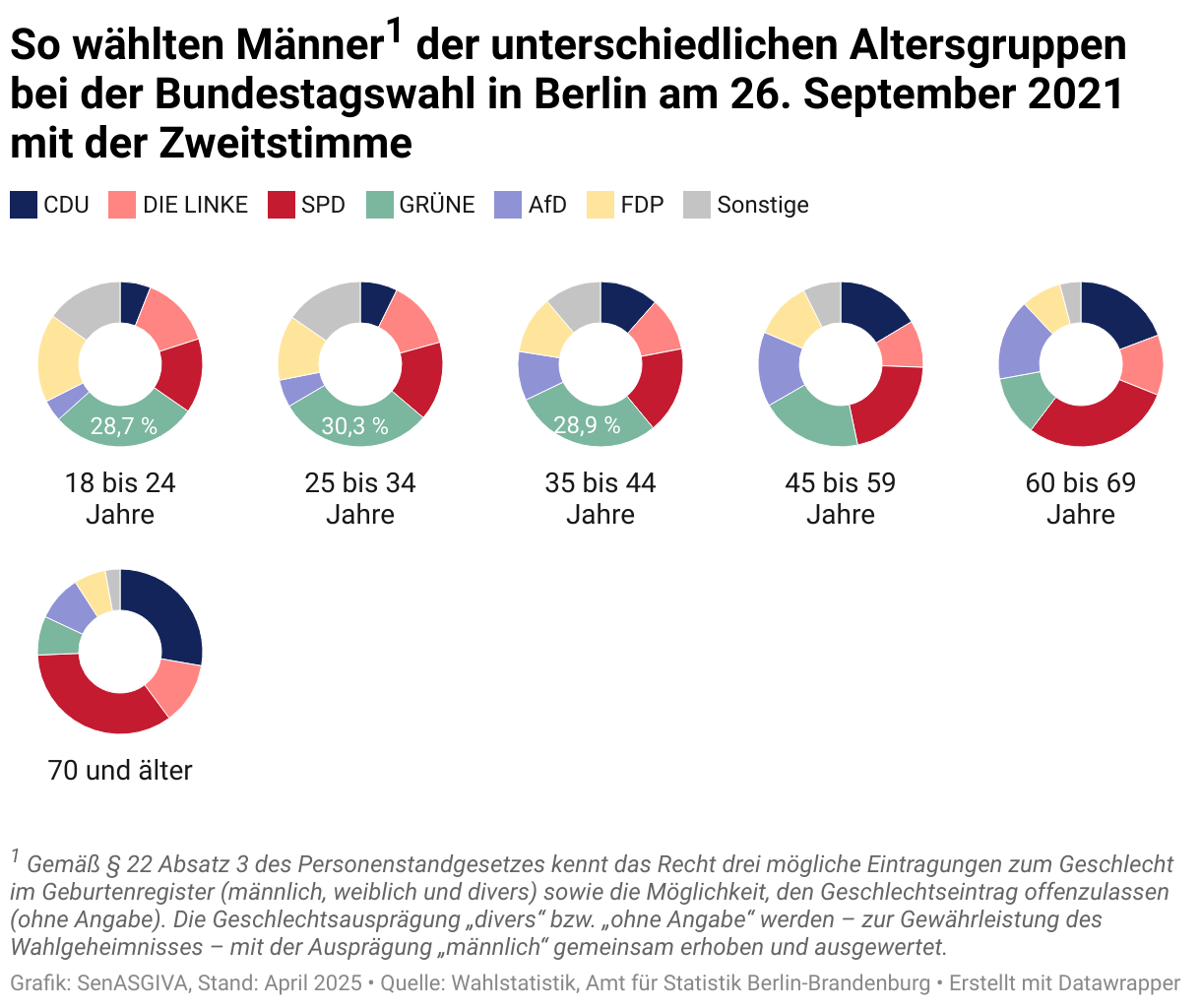 So wählten Männer1 der unterschiedlichen Altersgruppen bei der Bundestagswahl in Berlin am 26. September 2021 mit der Zweitstimme