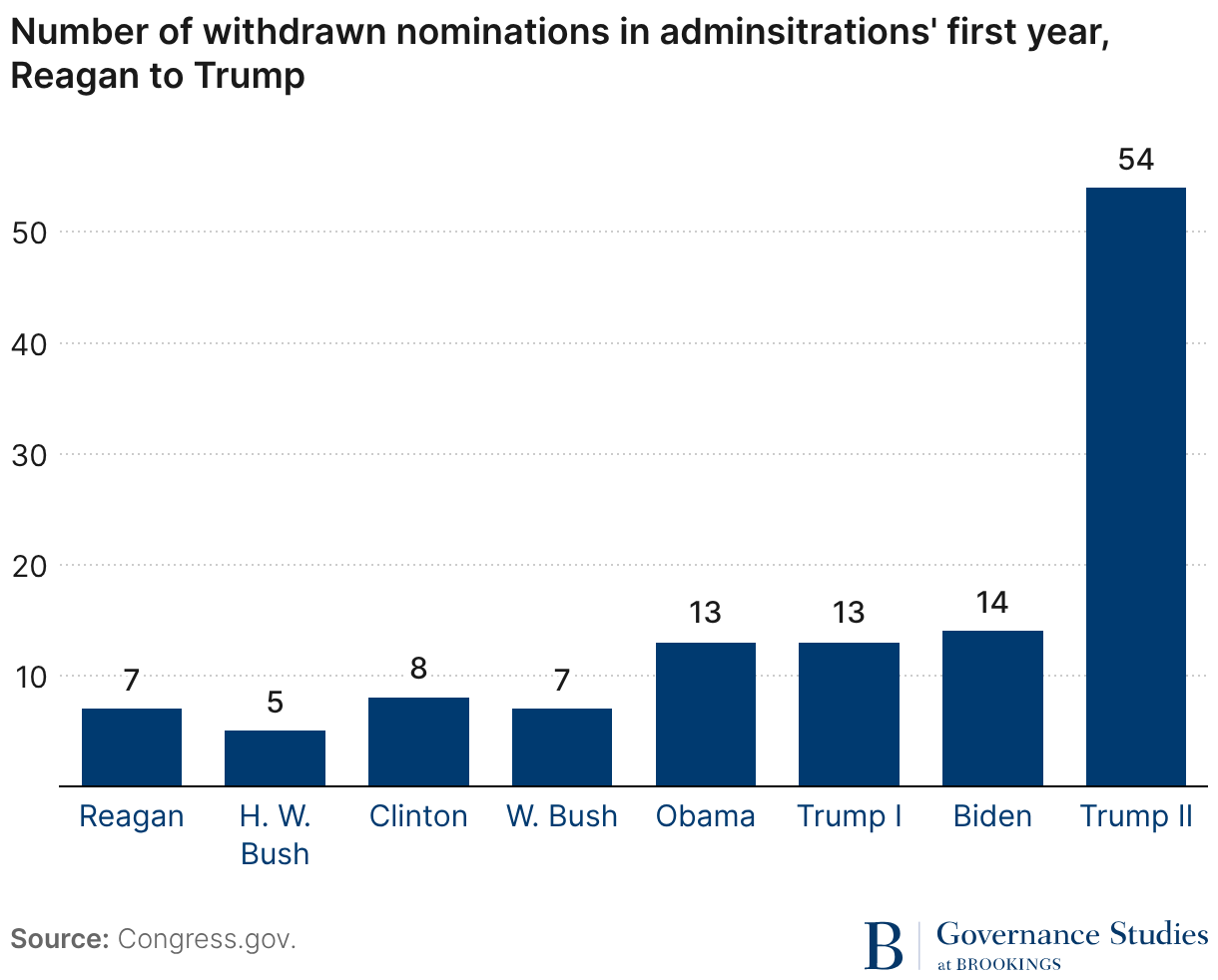Number of withdrawn nominations in adminsitrations' first year, Reagan to Trump