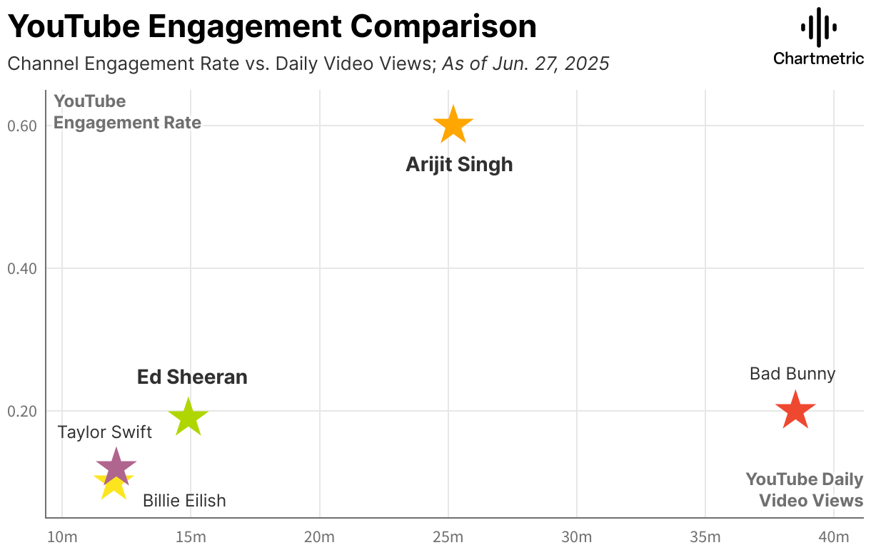 Channel Engagement Rate vs. Daily Video Views; As of Jun. 27, 2025