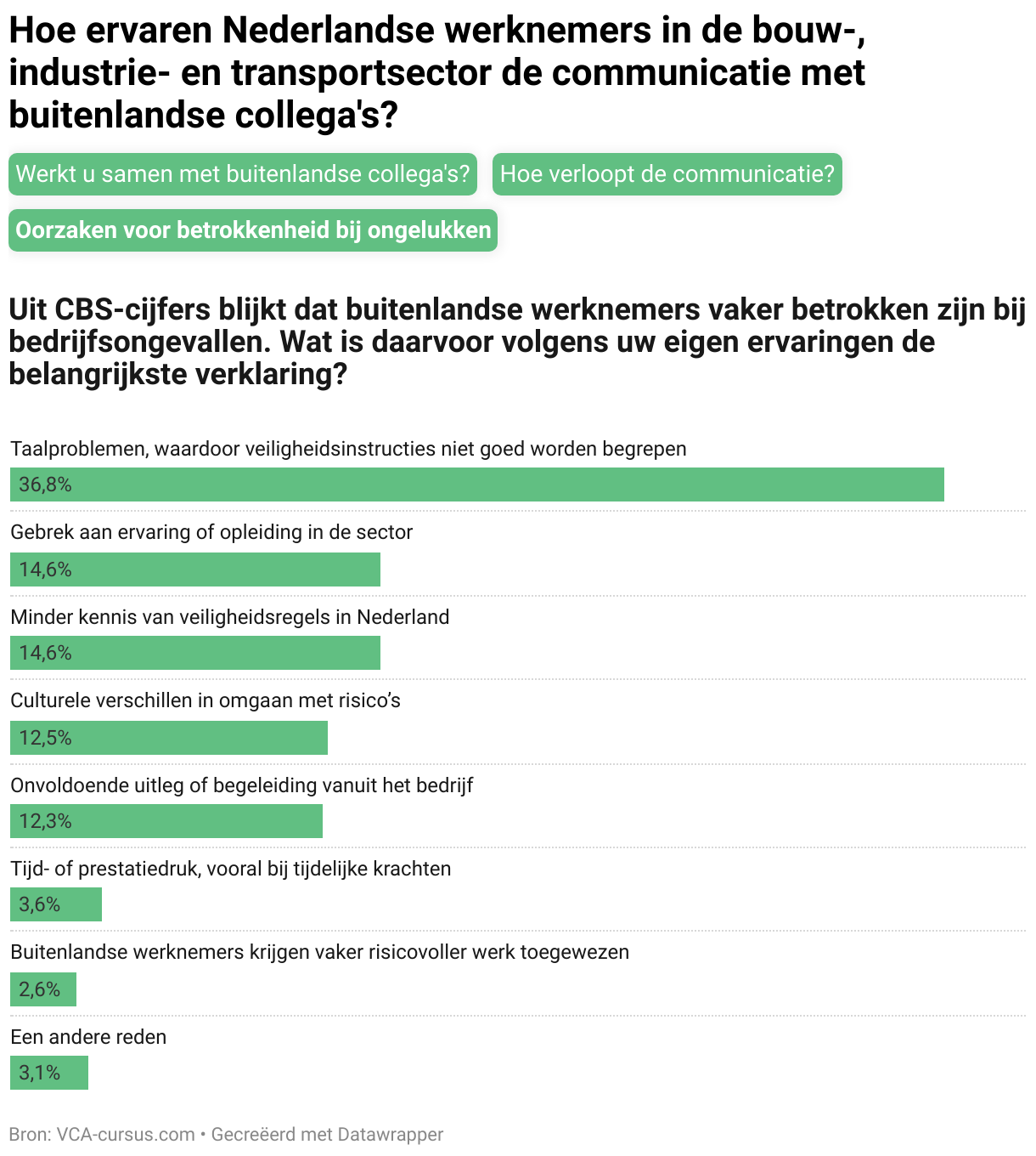 Uit CBS-cijfers blijkt dat buitenlandse werknemers vaker betrokken zijn bij bedrijfsongevallen. Wat is daarvoor volgens uw eigen ervaringen de belangrijkste verklaring?