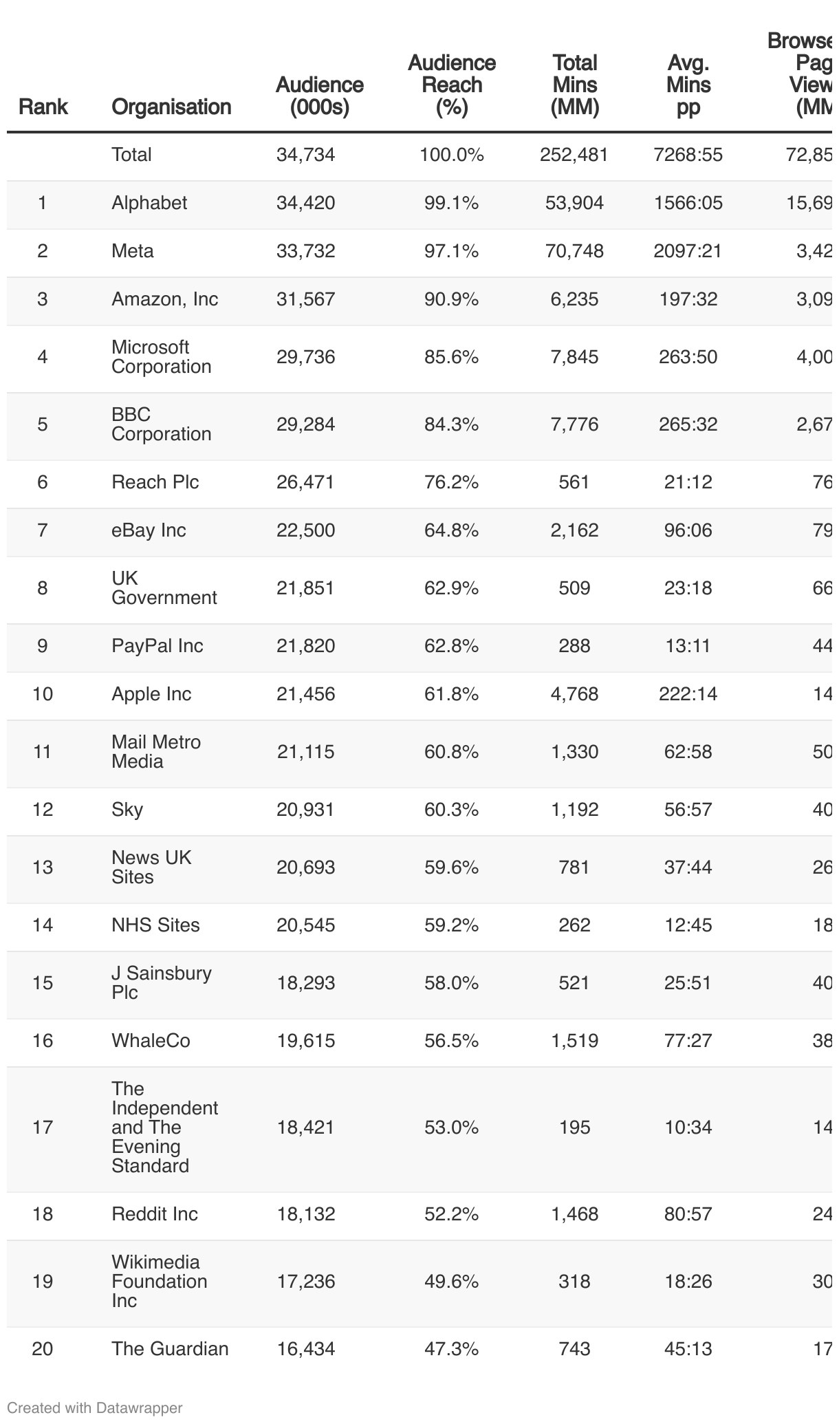 UKOM endorsed Ipsos iris monthly data for the UK’s top 20 online group properties for Adults 35+