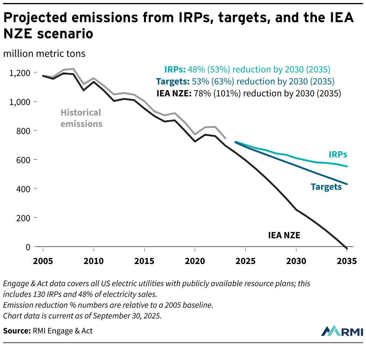 Projected emissions from IRPs, targets, and the IEA NZE scenario