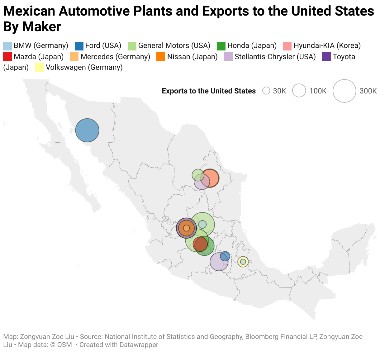 Mexican Automotive Plants and Exports to the United States By Maker