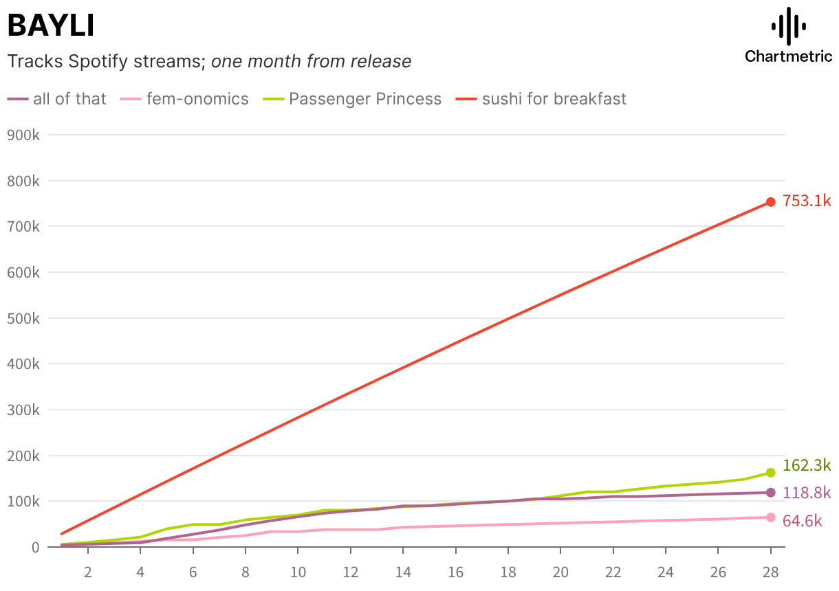 Tracks Spotify streams; one month from release
