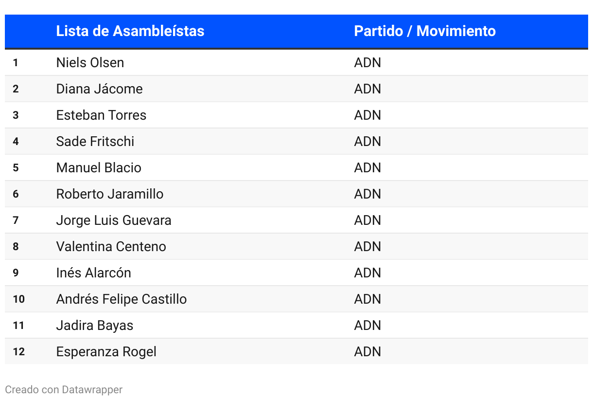 Asambleístas electos por ADN