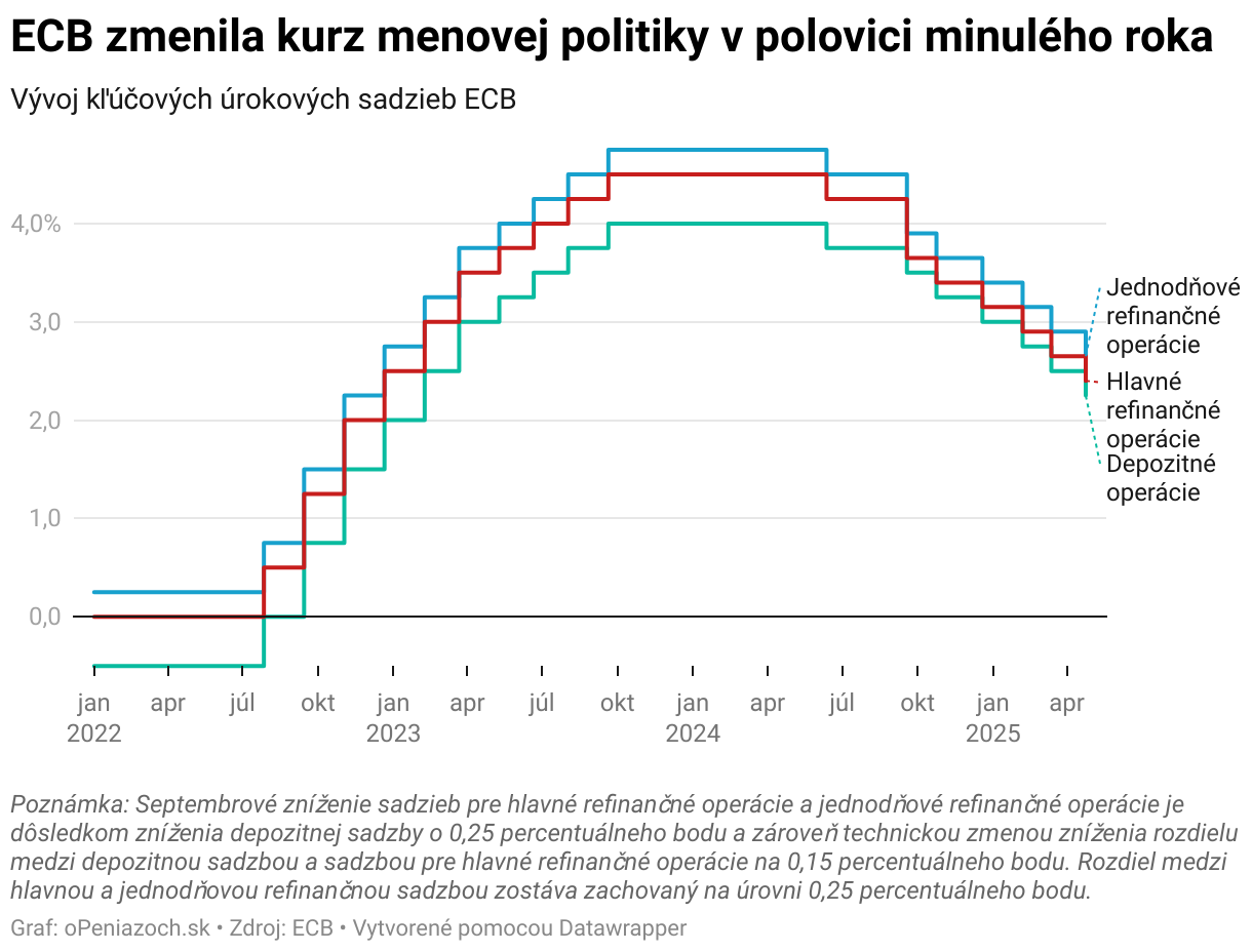 Vývoj kľúčových úrokových sadzieb ECB