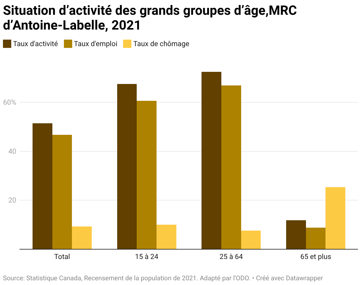Situation d’activité des grands groupes d’âge,MRC d’Antoine-Labelle, 2021