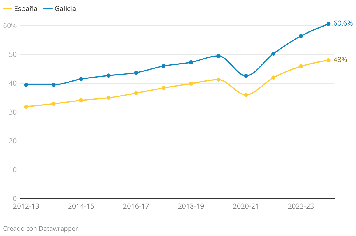 Taxa neta de escolaridade do alumnado de 0 a 2 anos