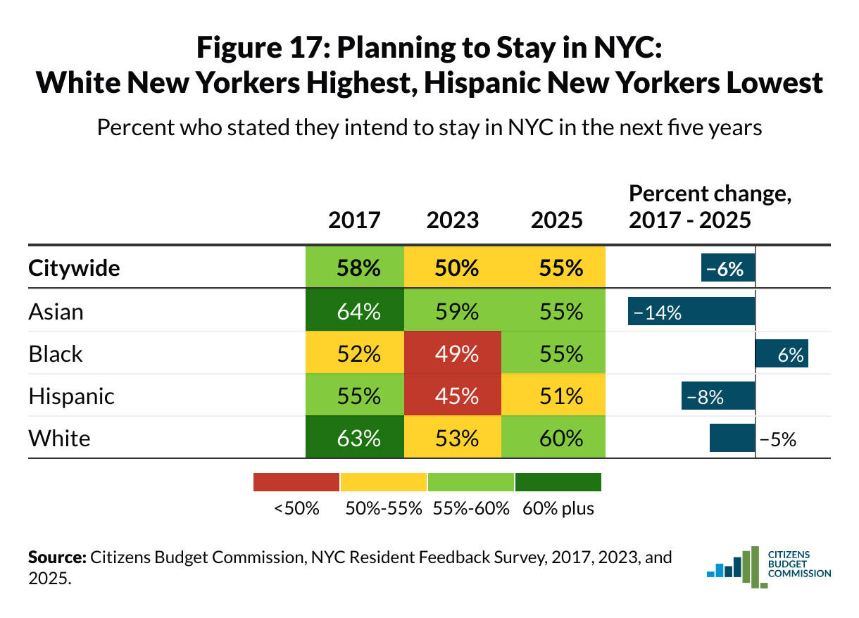 Percent who stated they intend to stay in NYC in the next five years