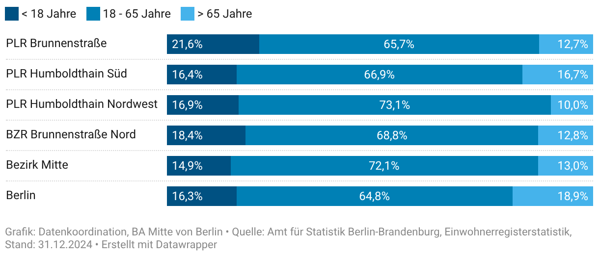 Grafik: Datenkoordination, BA Mitte von BerlinQuelle: Amt für Statistik Berlin-Brandenburg, Einwohnerregisterstatistik, Stand: 31.12.2024Daten herunterladenGrafik herunterladenErstellt mit Datawrapper