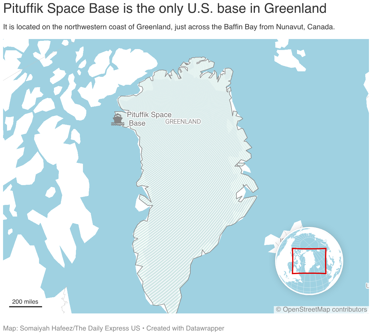 It is located on the northwestern coast of Greenland, just across the Baffin Bay from Nunavut, Canada.