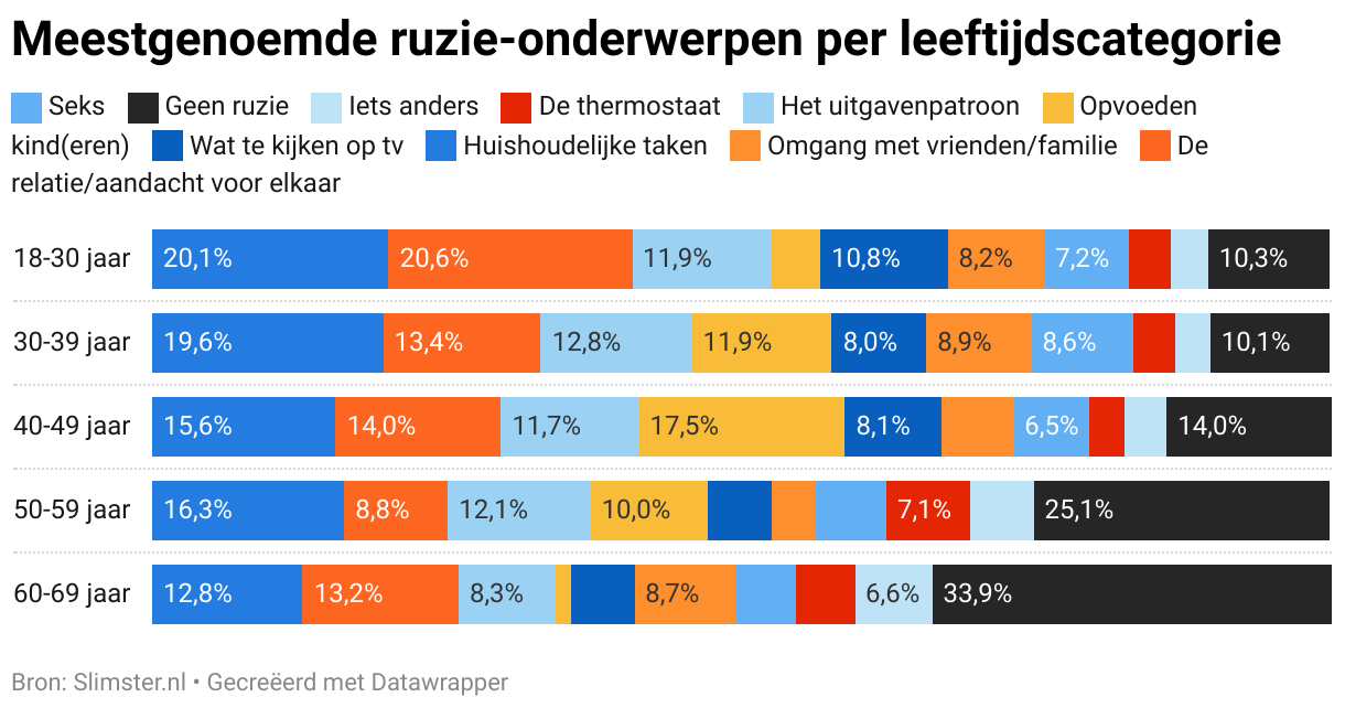 Meestgenoemde ruzie-onderwerpen per leeftijdscategorie