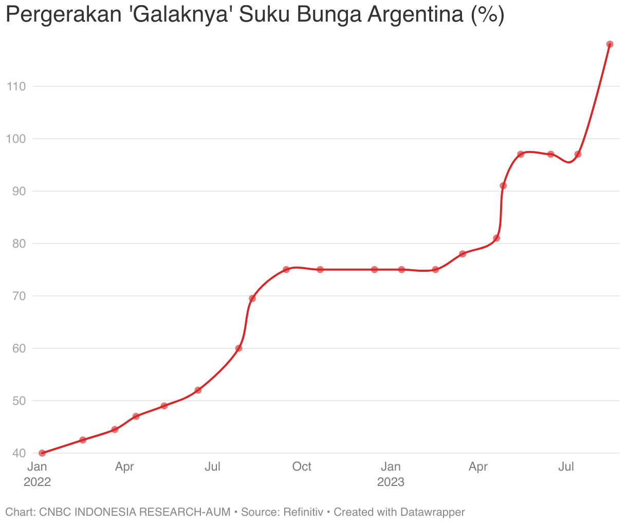 Pergerakan 'Galaknya' Suku Bunga Argentina (%)