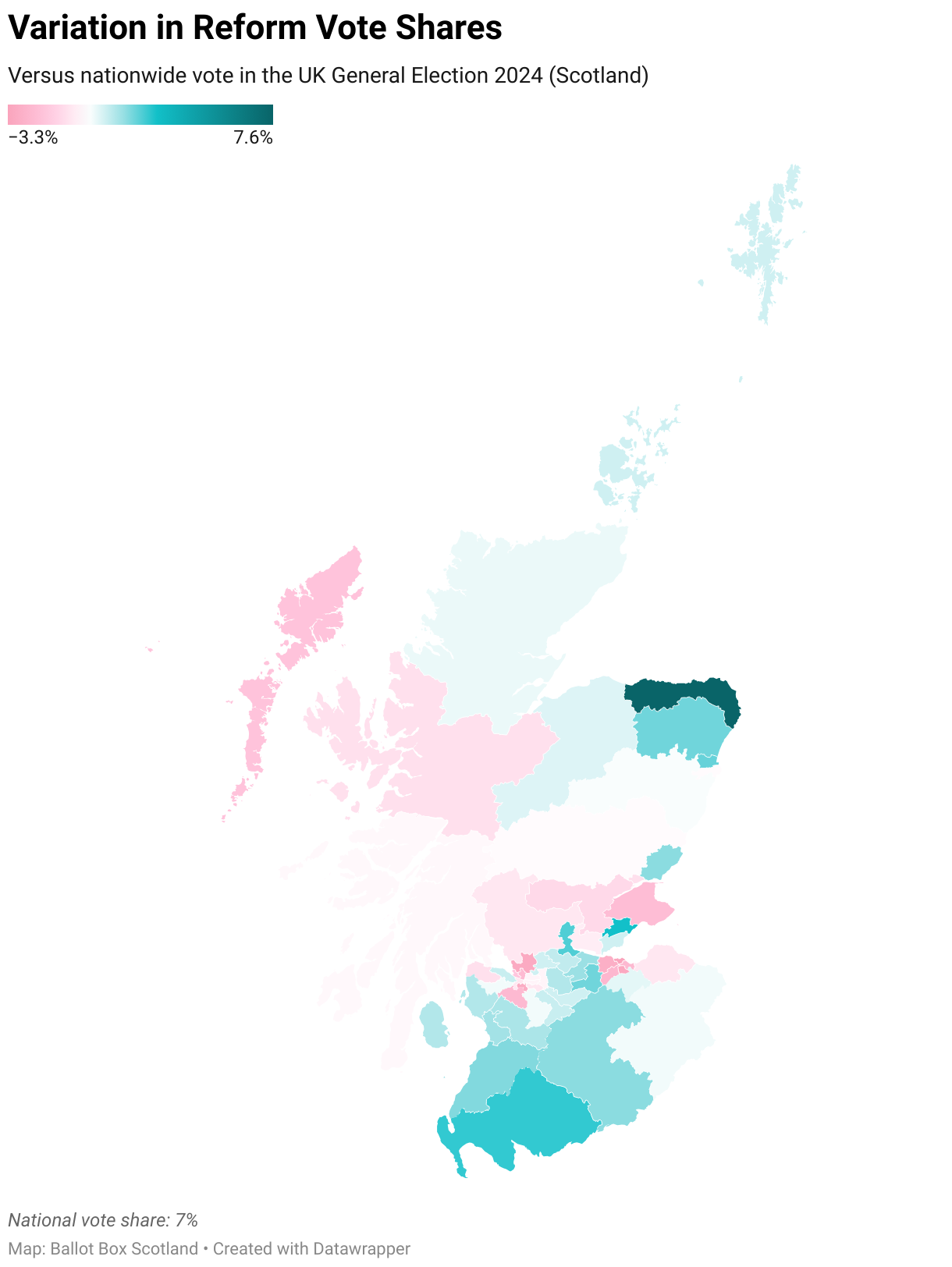 Versus nationwide vote in the UK General Election 2024 (Scotland)