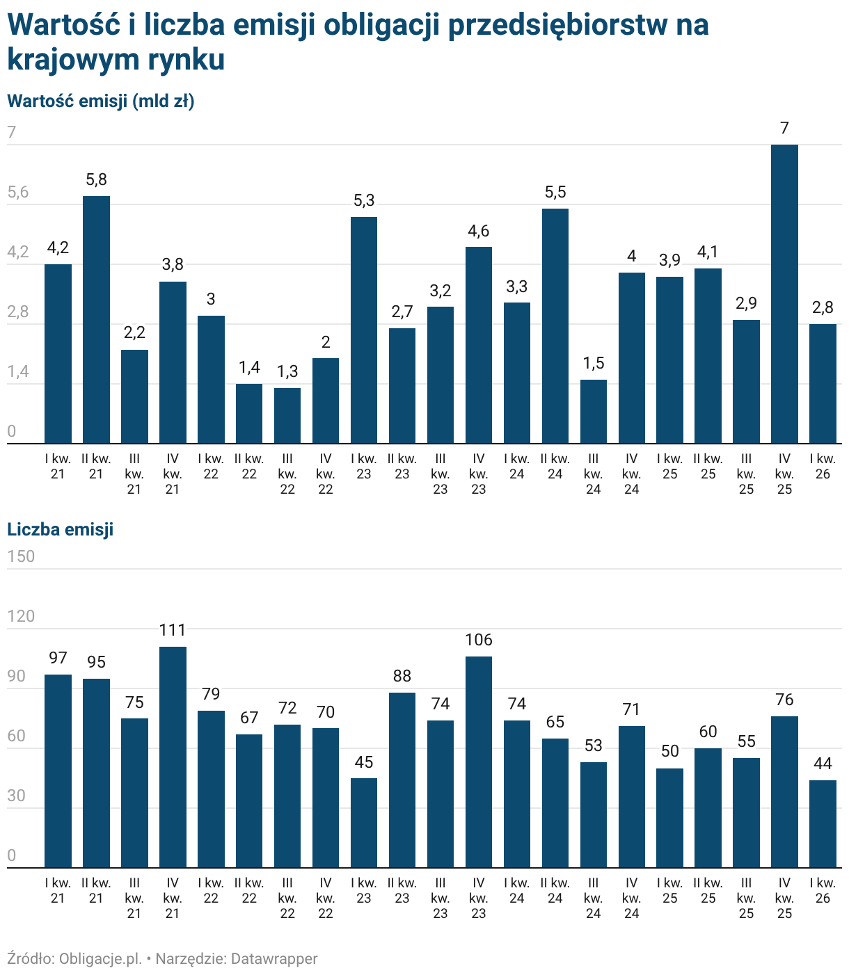 Wartość i liczba emisji obligacji przedsiębiorstw na krajowym rynku