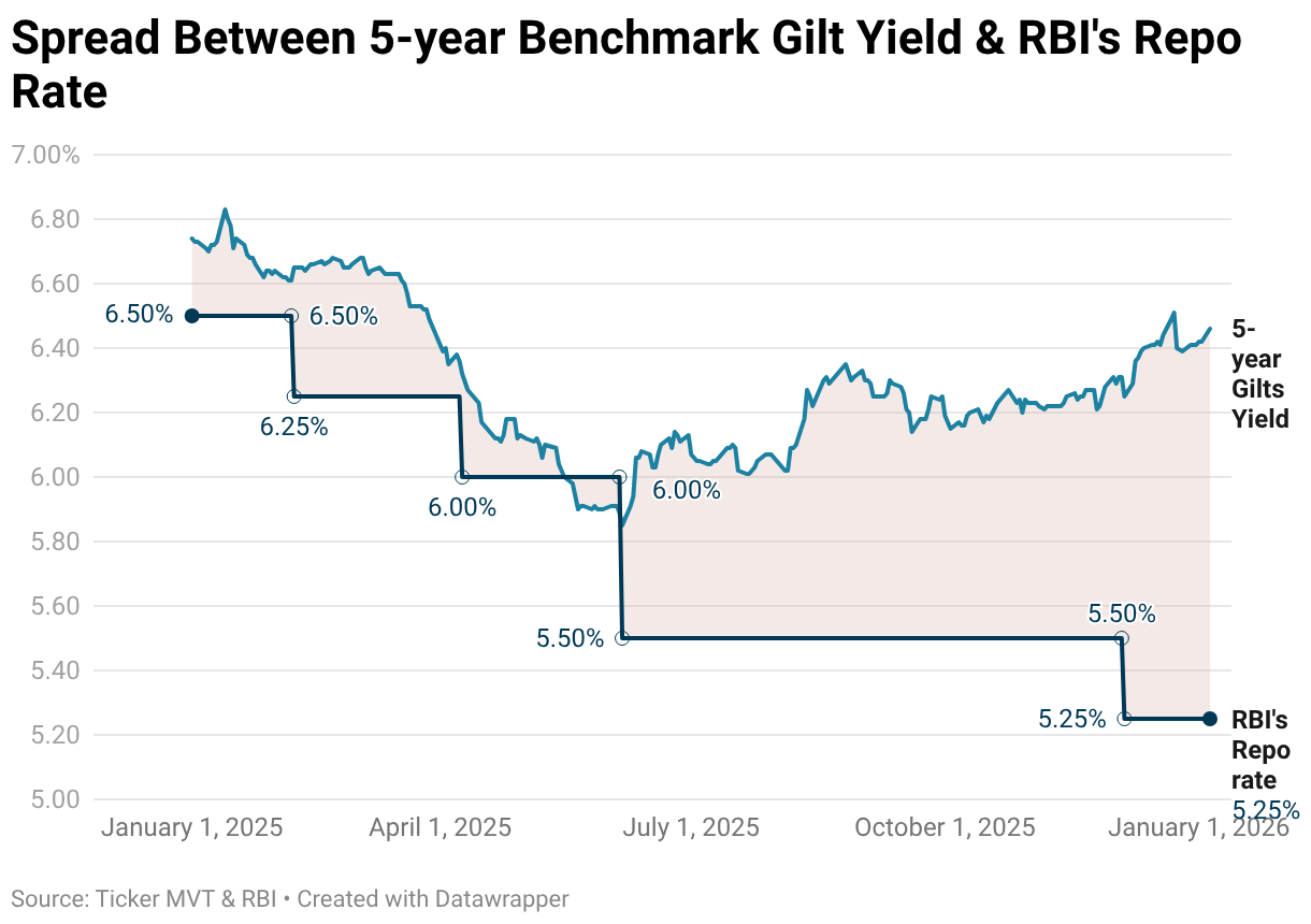 Spread Between 5-year Benchmark Gilt Yield & RBI's Repo Rate