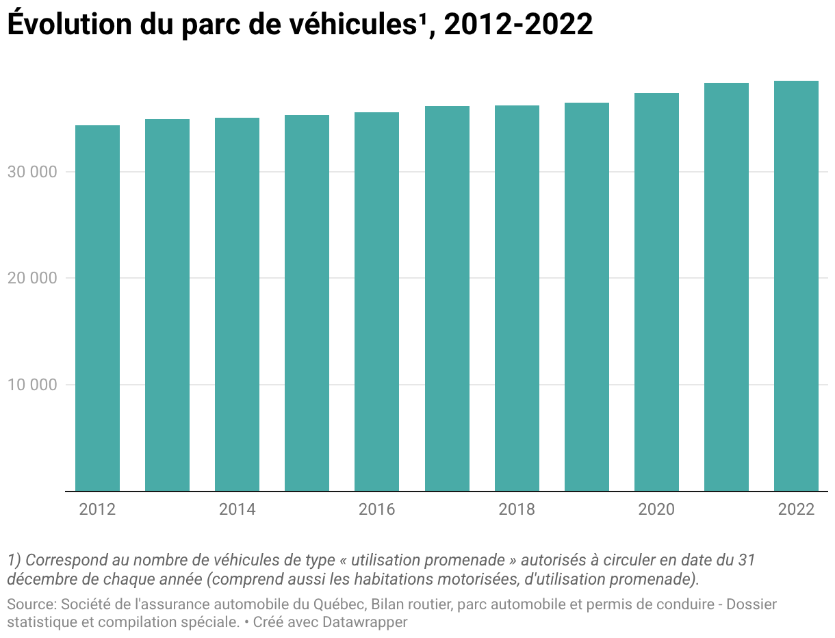 Évolution du parc de véhicules¹, 2012-2022