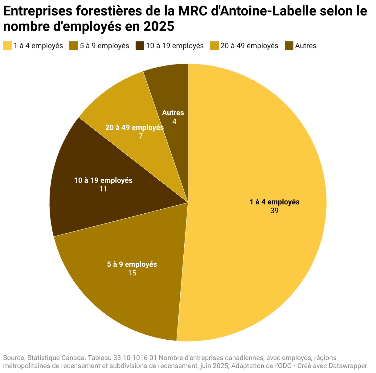 Entreprises forestières de la MRC d'Antoine-Labelle selon le nombre d'employés en 2025