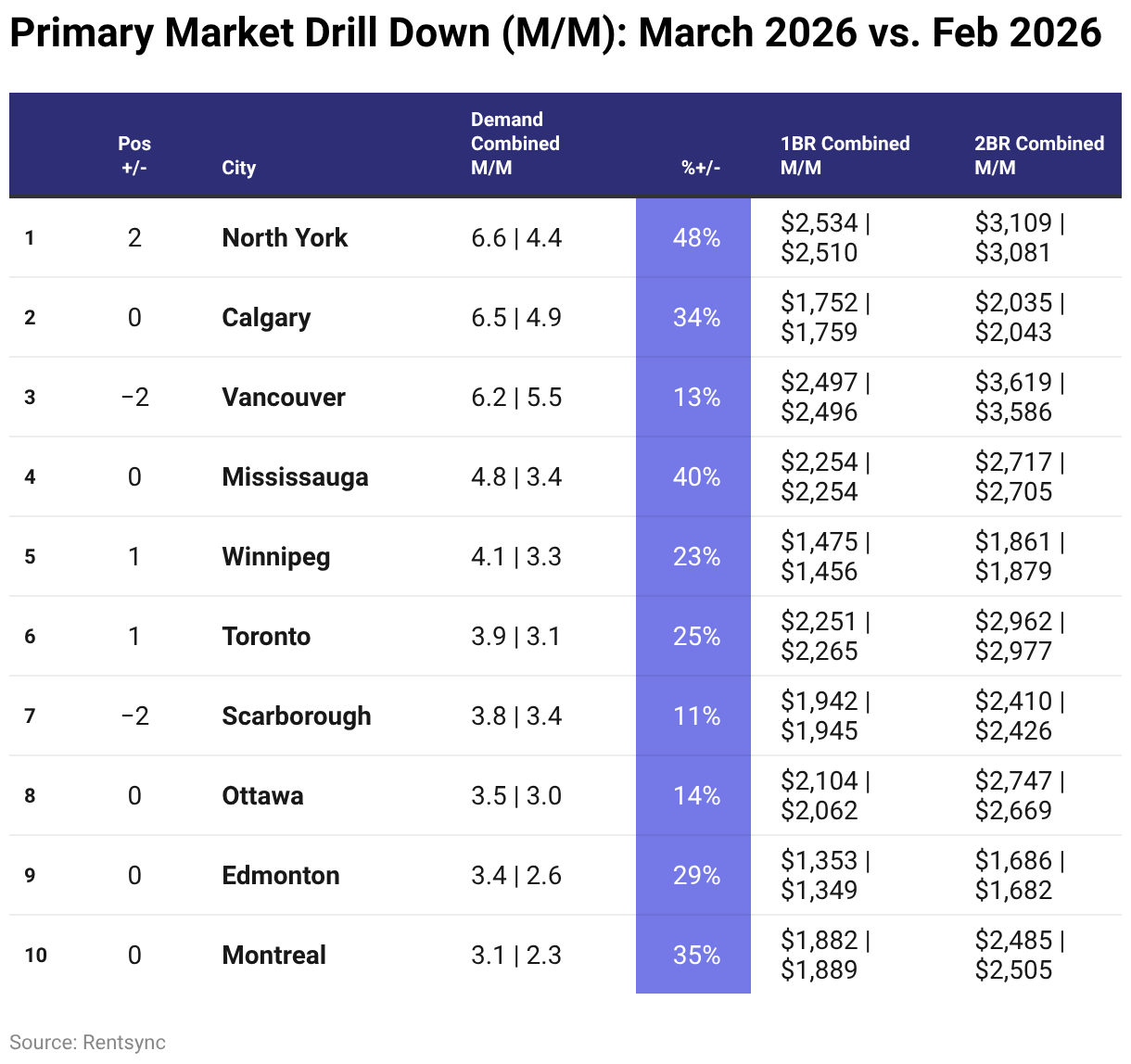 Primary Market Drill Down (M/M): March 2026 vs. Feb 2026