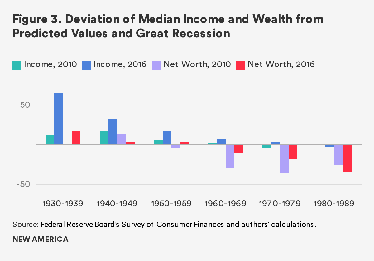 Figure 3. Deviation of Median Income and Wealth from Predicted Values and Great Recession