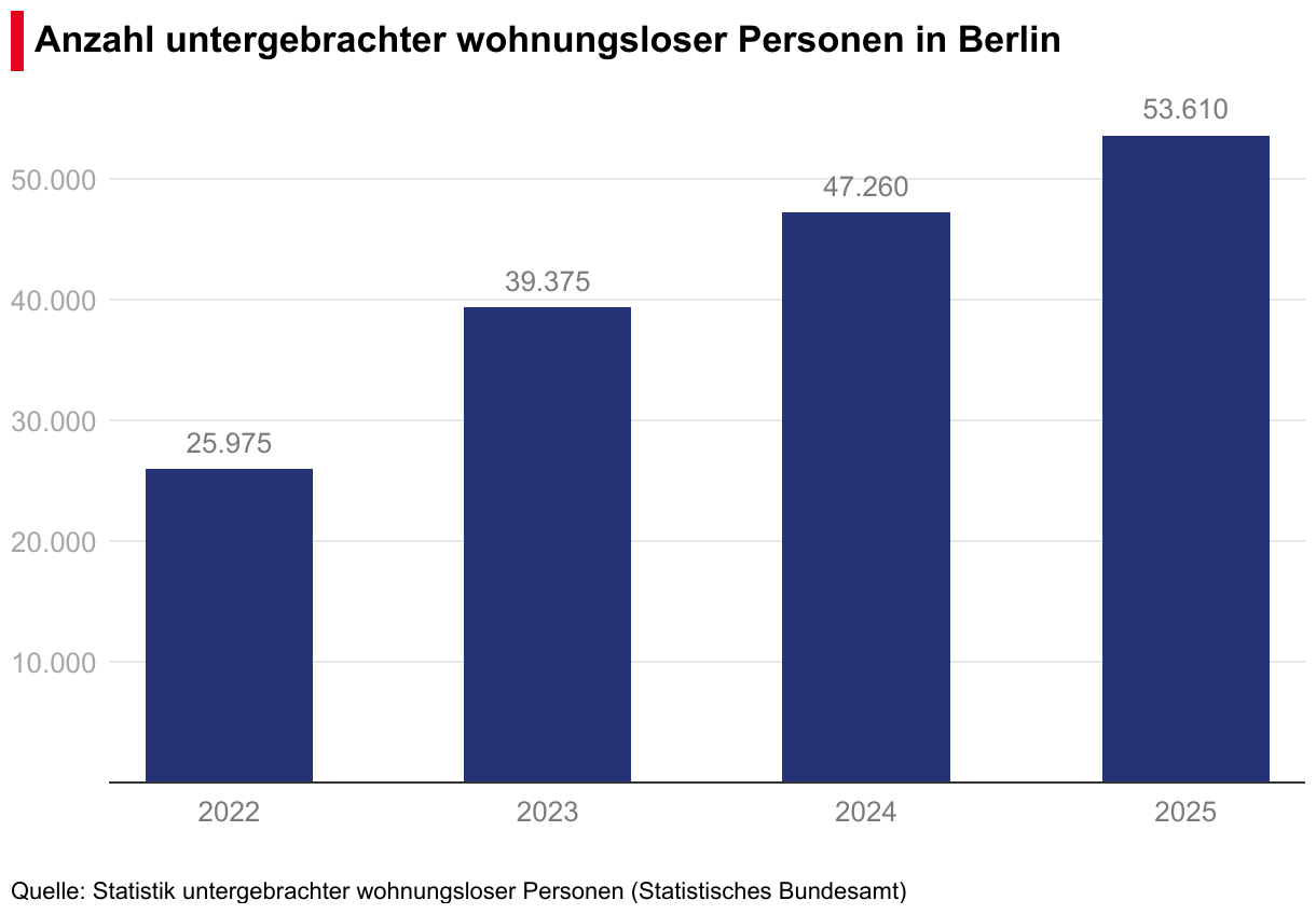 Anzahl untergebrachter wohnungsloser Personen in Berlin