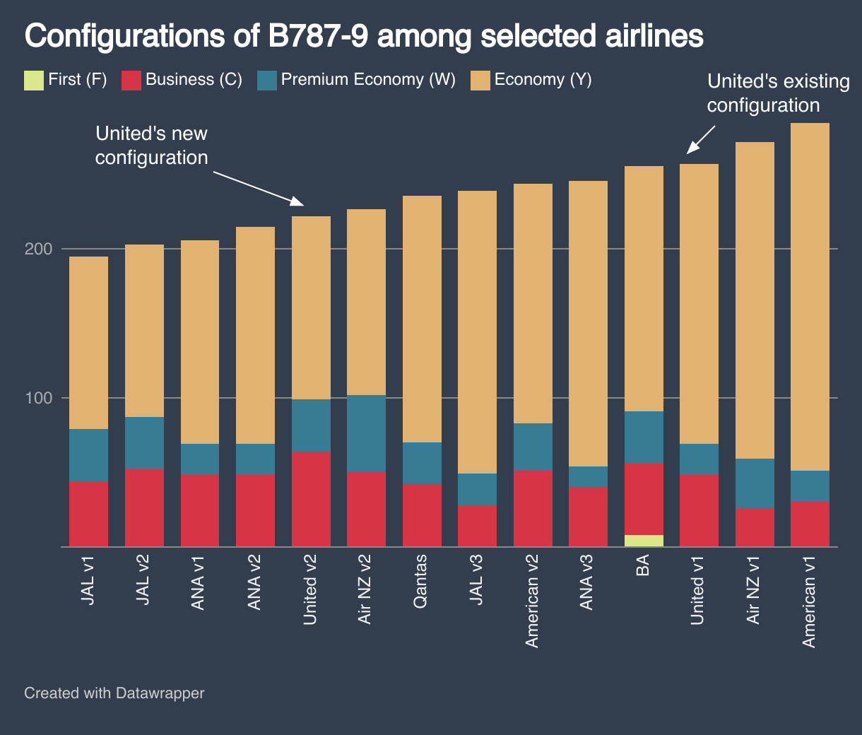Configurations of B787-9 among selected airlines