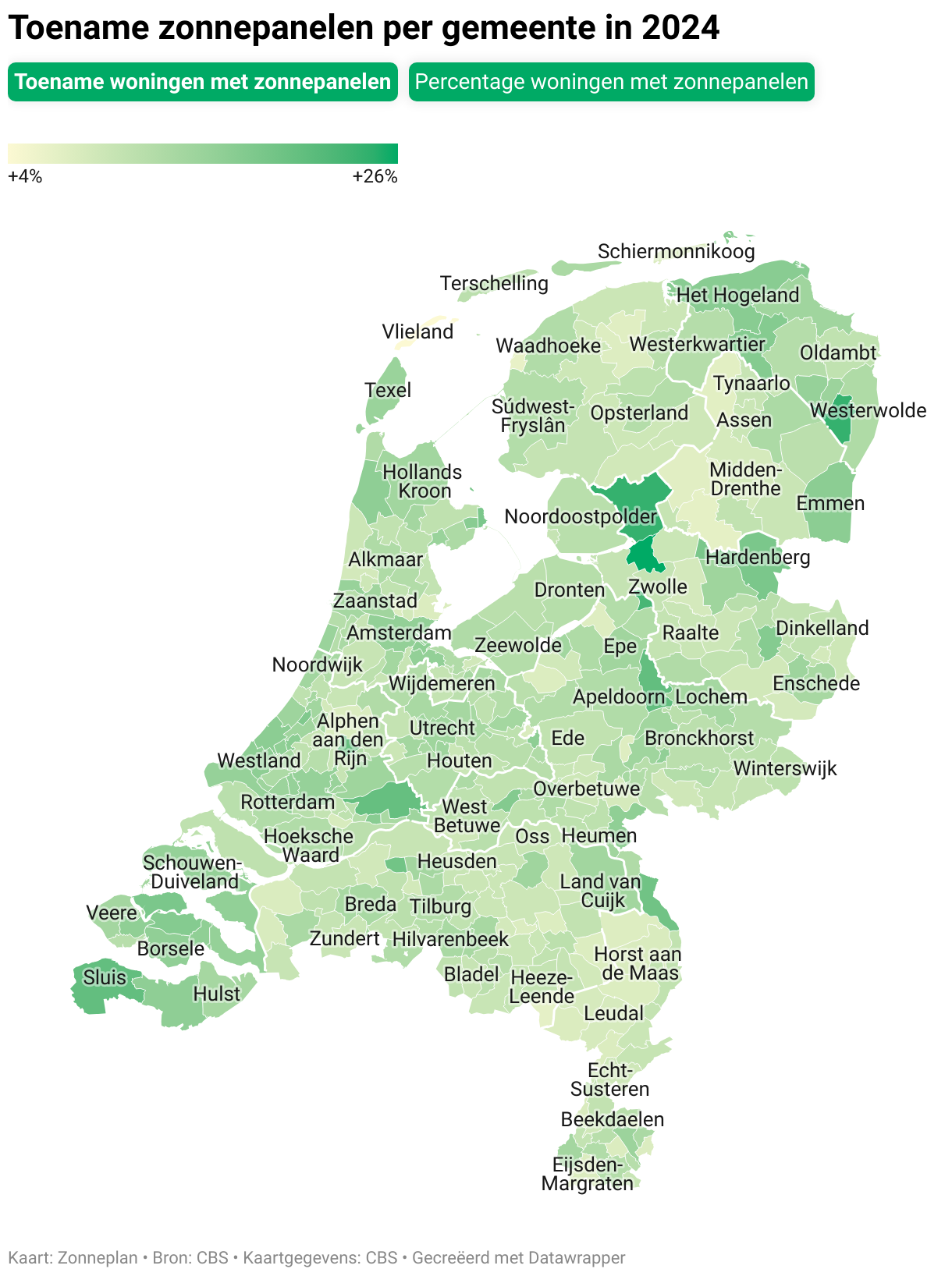 Toename woningen met zonnepanelen Percentage woningen met zonnepanelen