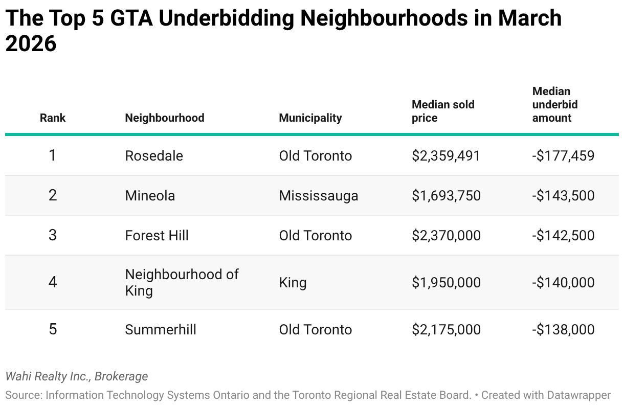 The Top 5 GTA Underbidding Neighbourhoods in March 2026