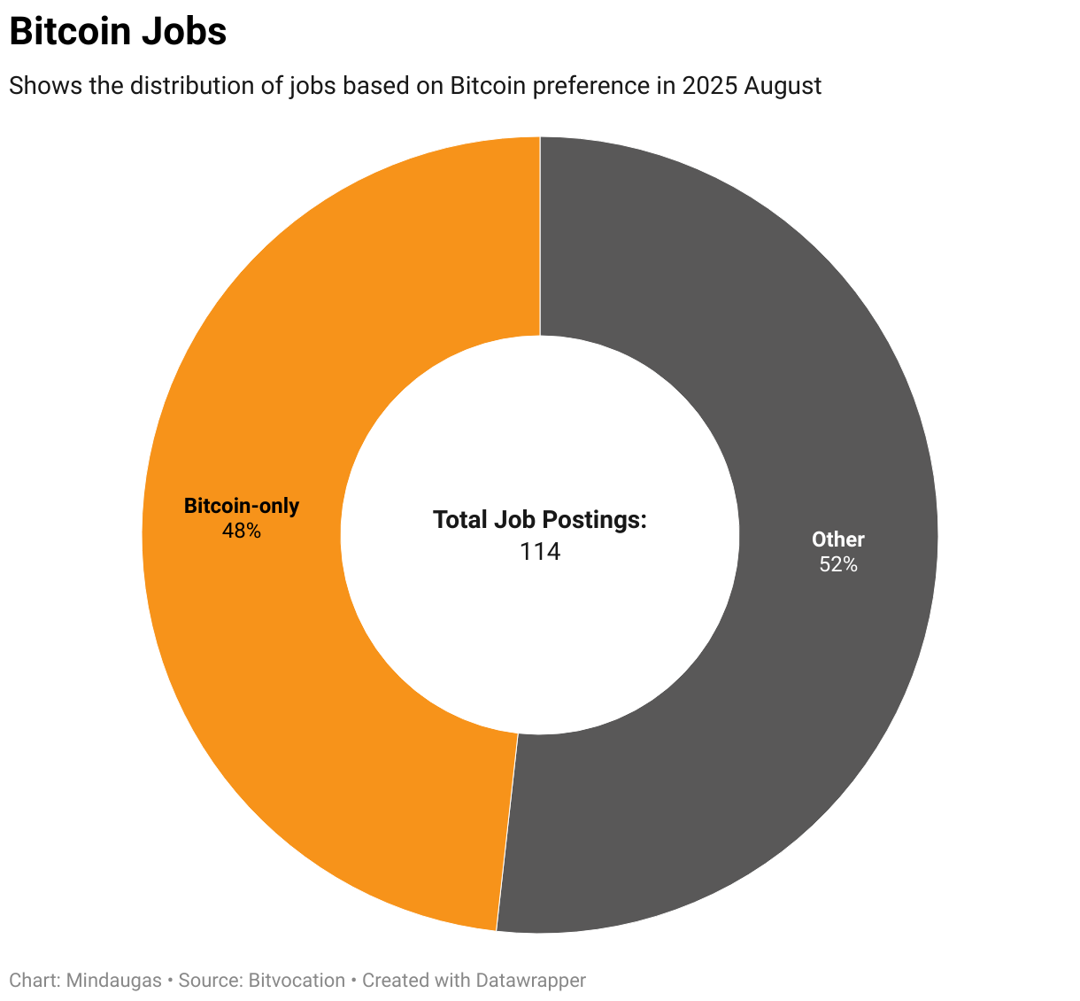 Shows the distribution of jobs based on Bitcoin preference in 2025 August