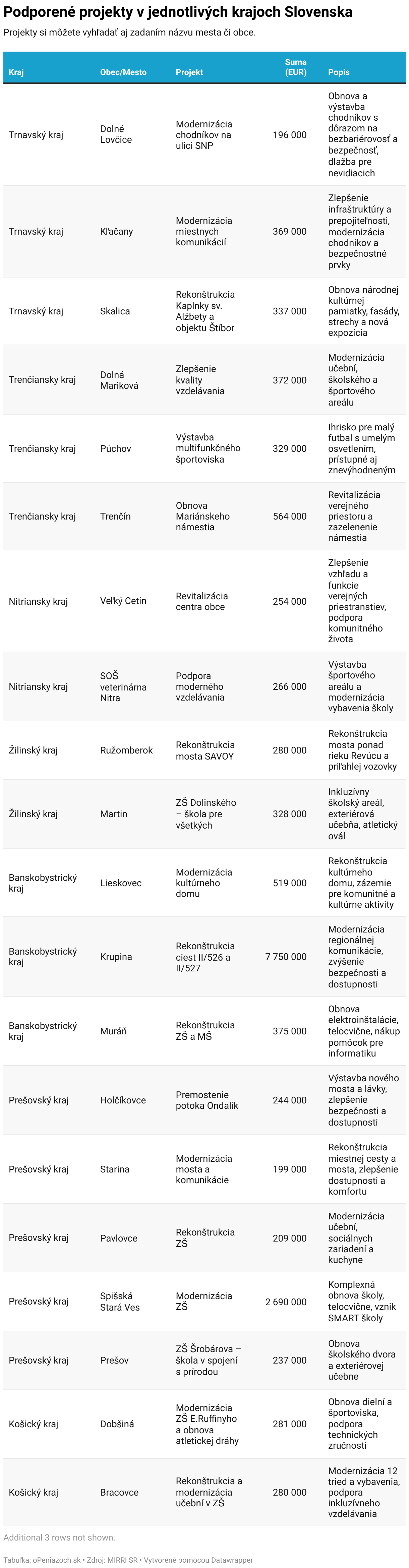 Projekty si môžete vyhľadať aj zadaním názvu mesta či obce.