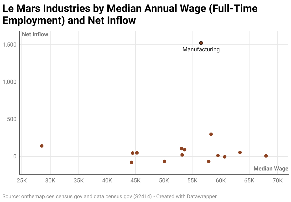 Le Mars Industries by Median Annual Wage (Full-Time Employment) and Net Inflow