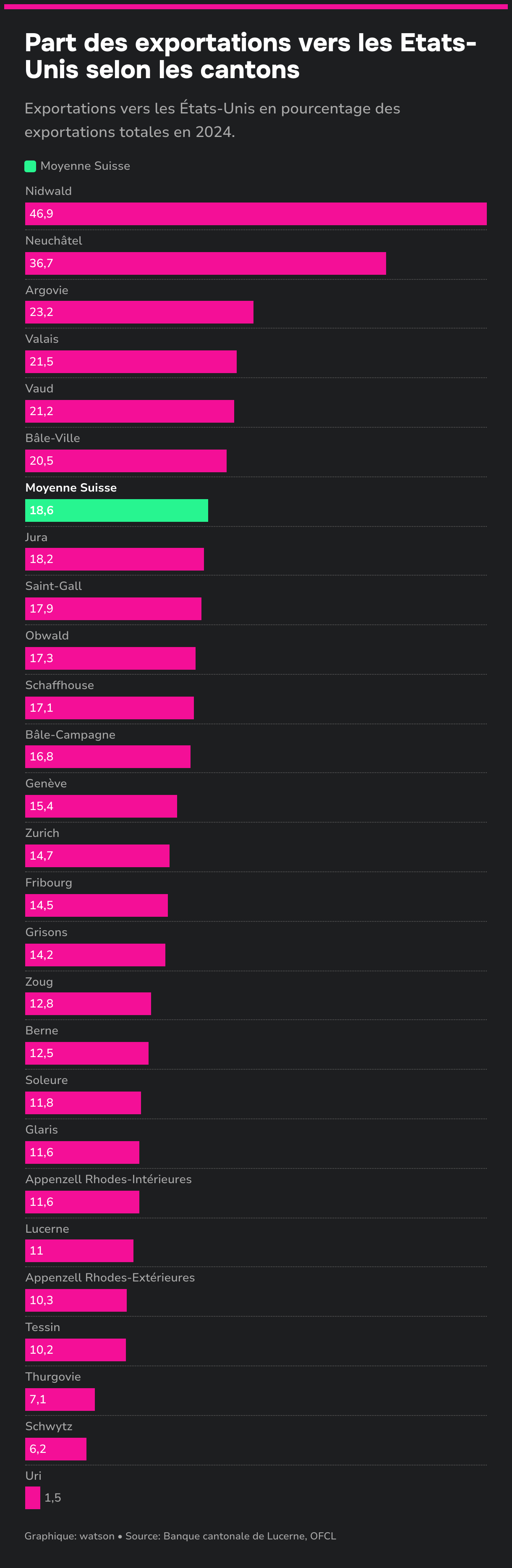 Exportations vers les États-Unis en pourcentage des exportations totales en 2024.