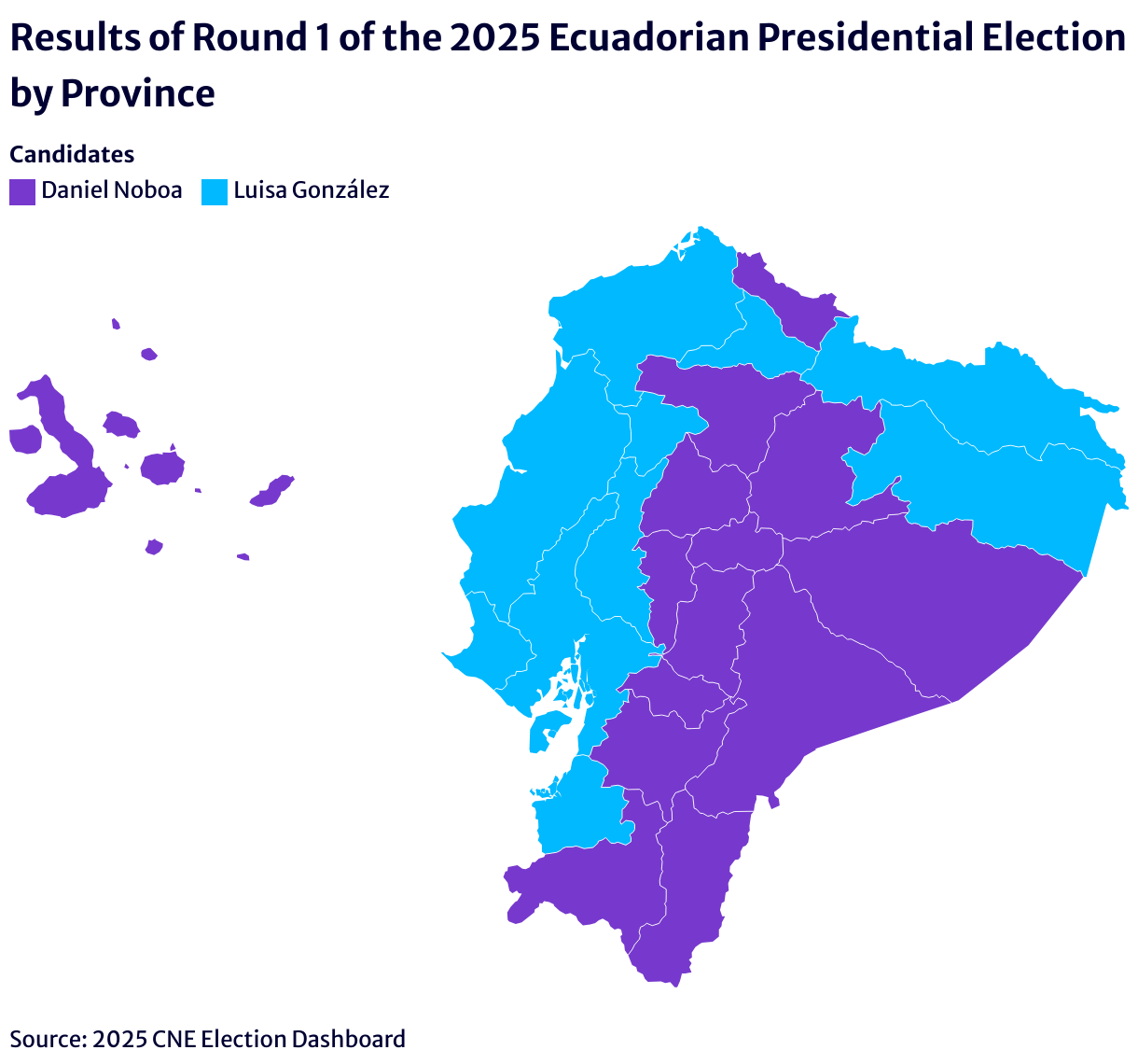 Results of Round 1 of the 2025 Ecuadorian Presidential Election by Province